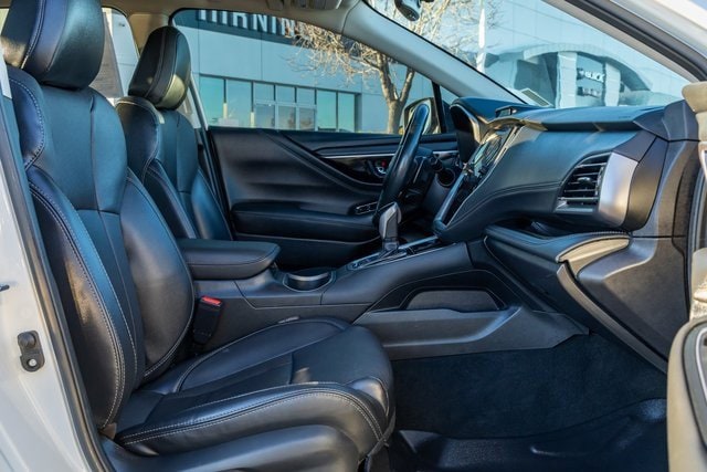 Power Moonroof & HSW & Navigation System (DriverFocus (Driver Monitoring System), Heated Steering Wheel, Power Moonroof, and Radio: Subaru STARLINK 11.6 Multimedia Nav System), 12 Speakers, 3.90 Axle Ratio, 4-Wheel Disc Brakes, ABS brakes, Air Conditioning, All-Weather Floor Liners, Alloy wheels, AM/FM radio: SiriusXM, Auto High-beam Headlights, Auto-Dimming Exterior Mirror w/Approach Light, Auto-dimming Rear-View mirror, Automatic temperature control, Brake assist, Bumpers: body-color, Compass, Driver door bin, Driver vanity mirror, Dual front impact airbags, Dual front side impact airbags, Electronic Stability Control, Emergency communication system: STARLINK Safety Plus (3-year free trial), Exterior Parking Camera Rear, Four wheel independent suspension, Front anti-roll bar, Front Bucket Seats, Front Center Armrest w/Storage, Front dual zone A/C, Front fog lights, Front reading lights, Fully automatic headlights, Garage door transmitter: HomeLink, harman/kardon® Speakers, Heated door mirrors, Heated Front Bucket Seats, Heated front seats, Heated rear seats, Illuminated entry, Knee airbag, Leather Shift Knob, Leather steering wheel, Low tire pressure warning, Memory seat, Occupant sensing airbag, Outside temperature display, Overhead airbag, Overhead console, Panic alarm, Passenger door bin, Passenger vanity mirror, Perforated Leather-Trimmed Upholstery, Power door mirrors, Power driver seat, Power Liftgate, Power passenger seat, Power steering, Power windows, Radio: Subaru STARLINK 11.6 Multimedia Plus Sys, Rear anti-roll bar, Rear Bumper Cover, Rear Seat Back Protector, Rear seat center armrest, Rear window defroster, Rear window wiper, Remote keyless entry, Roof rack, Security system, Speed control, Speed-sensing steering, Split folding rear seat, Spoiler, Steering wheel mounted audio controls, Steering Wheel Paddle Shift Control Switches, Tachometer, Telescoping steering wheel, Tilt steering wheel, Traction control, Trip computer, Turn signal indicator mirrors, Variably intermittent wipers, and Wheels: 18 x 7J Black Aluminum Alloy.