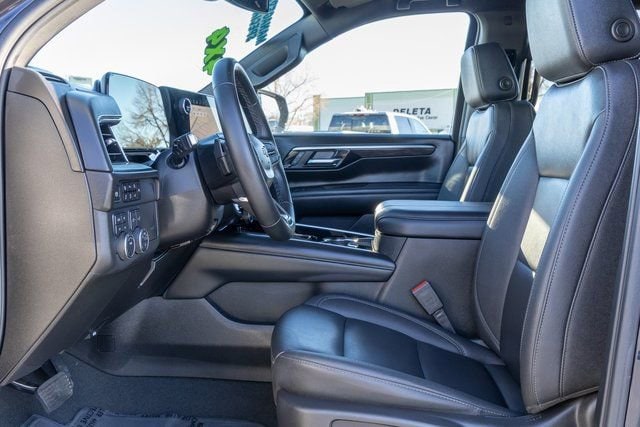 License Plate Front Mounting Package, Preferred Equipment Group 2Z7 (2-Speed Active Electronic AutoTrac Transfer Case, 8-Way Power Front Passenger Seat Adjuster, Auto-Dimming Inside Rear-View Mirror, Black Tubular Assist Steps, Bright Front and Rear Door Sill Plates, Dual Exhaust System, Front High-Approach Angle Fascia, Front LED Fog Lamps, Heated Driver and Front Passenger Seats, Heavy-Duty Air Filter, Hill Descent Control, Memory Settings For Driver, Rear Power Liftgate, Red Recovery Hooks, Universal Home Remote, Wheels: 20 x 9 Bright Machined Aluminum, Wireless Phone Charging, and Z71 Exterior Features), 2-Way Driver Power Lumbar Seat Adjuster, 2-Way Front Passenger Power Lumbar Seat Adjuster, 3.23 Rear Axle Ratio, 3rd row seats: split-bench, 4-Wheel Disc Brakes, 6 Speakers, 6-Speaker Audio System, 8-Way Power Driver Seat Adjuster, ABS brakes, Air Conditioning, Alloy wheels, AM/FM radio: SiriusXM with 360L, Apple CarPlay/Android Auto, Auto High-beam Headlights, Auto-dimming Rear-View mirror, Automatic temperature control, Brake assist, Bumpers: body-color, Compass, Delay-off headlights, Driver door bin, Driver vanity mirror, Dual front impact airbags, Dual front side impact airbags, Electronic Stability Control, Emergency communication system: OnStar Services capable, Exterior Parking Camera Rear, Four wheel independent suspension, Front anti-roll bar, Front Bucket Seats, Front Center Armrest, Front dual zone A/C, Front fog lights, Front reading lights, Fully automatic headlights, Garage door transmitter, Heated door mirrors, Heated front seats, Illuminated entry, Leather-Appointed Seating, Low tire pressure warning, Memory seat, Navigation system: Google built-in compatibility (select service plan required, terms and limitations apply), Occupant sensing airbag, Outside temperature display, Overhead airbag, Overhead console, Panic alarm, Passenger door bin, Passenger vanity mirror, Power door mirrors, Power driver seat, Power Liftgate, Power passenger seat, Power steering, Power windows, Premium Smooth Ride Suspension, Radio data system, Radio: 17.7 Diagonal Advanced Color LCD Display, Rain sensing wipers, Rear air conditioning, Rear anti-roll bar, Rear reading lights, Rear seat center armrest, Rear window defroster, Rear window wiper, Remote keyless entry, Security system, SiriusXM with 360L Trial Subscription, Speed control, Speed-sensing steering, Split folding rear seat, Spoiler, Steering wheel mounted audio controls, Tachometer, Telescoping steering wheel, Tilt steering wheel, Traction control, Trip computer, Variably intermittent wipers, Voltmeter, and Wireless Apple CarPlay/Wireless Android Auto.