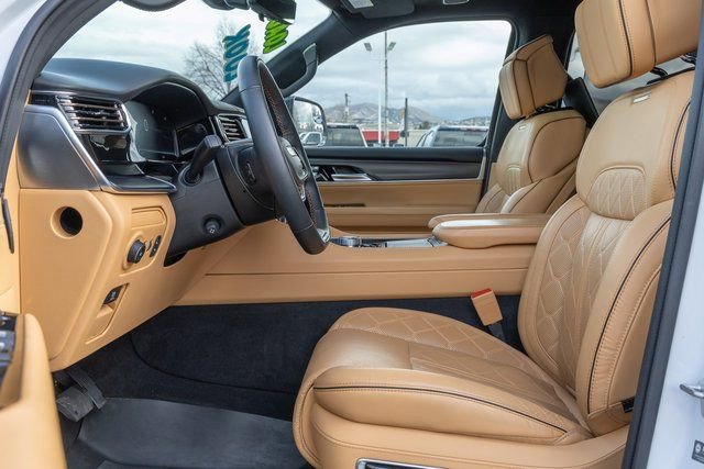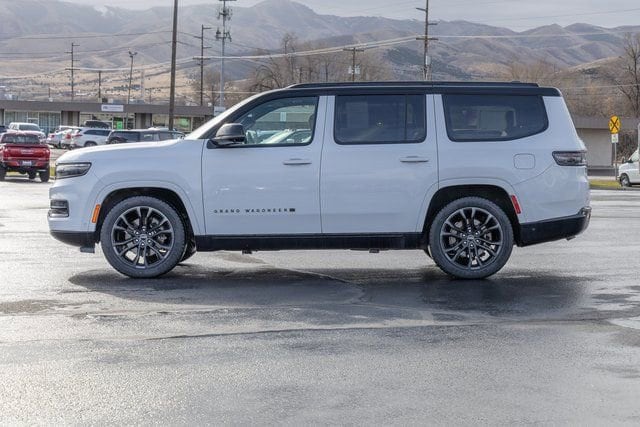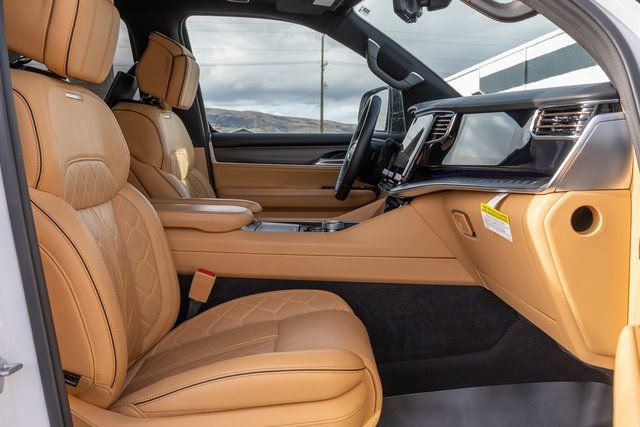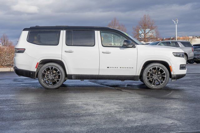 MOPAR Interior Protection Package (All-Season Floor Mats and Cargo Tray), Obsidian Appearance Package, Quick Order Package 28T Obsidian (Black Interior Accents, Black Roof, Gloss Black Upper & Lower DLO Molding, Piano Black Exterior Accents, and Wheels: 22 x 9.0 Tinted Polished w/Black Insert), Rear Seat Video Group 1 (Amazon Fire TV Built-In, Seatback Video Screens, and Video USB Port), Two Tone Paint Group, 3.92 Rear Axle Ratio, 3rd row seats: bench, 4-Wheel Disc Brakes, ABS brakes, Adjustable pedals, Air Conditioning, Alloy wheels, AM/FM radio: SiriusXM with 360L, Anti-whiplash front head restraints, Apple CarPlay/Android Auto, Audio memory, Auto High-beam Headlights, Auto-dimming door mirrors, Auto-dimming Rear-View mirror, Auto-leveling suspension, Automatic temperature control, Brake assist, Bumpers: body-color, Compass, Delay-off headlights, Driver door bin, Driver vanity mirror, Driver's Seat Mounted Armrest, Dual front impact airbags, Dual front side impact airbags, Electronic Stability Control, Emergency communication system: Wagoneer Connect, Four wheel independent suspension, Front anti-roll bar, Front Bucket Seats, Front Center Armrest w/Storage, Front dual zone A/C, Front fog lights, Front reading lights, Fully automatic headlights, Garage door transmitter, Genuine wood console insert, Genuine wood dashboard insert, Genuine wood door panel insert, Heads-Up Display, Heated door mirrors, Heated front seats, Heated rear seats, Heated steering wheel, Illuminated entry, Knee airbag, Leather steering wheel, Low tire pressure warning, Memory seat, Navigation System, Night vision lights, Normal Duty Suspension, Occupant sensing airbag, Outside temperature display, Overhead airbag, Overhead console, Panic alarm, Passenger door bin, Passenger seat mounted armrest, Passenger vanity mirror, Pedal memory, Power adjustable front head restraints, Power door mirrors, Power driver seat, Power Liftgate, Power moonroof, Power passenger seat, Power steering, Power windows, Premium Leather Trimmed Bucket Seats, Radio data system, Radio: Uconnect 5 Nav w/12.0 Display, Rain sensing wipers, Rear air conditioning, Rear anti-roll bar, Rear dual zone A/C, Rear reading lights, Rear seat center armrest, Rear window defroster, Rear window wiper, Reclining 3rd row seat, Remote keyless entry, Roof rack, Security system, Speed control, Speed-sensing steering, Speed-Sensitive Wipers, Split folding rear seat, Steering wheel memory, Steering wheel mounted audio controls, Tachometer, Telescoping steering wheel, Tilt steering wheel, Traction control, Trip computer, Turn signal indicator mirrors, Variably intermittent wipers, Ventilated front seats, Ventilated rear seats, Voltmeter, and Wheels: 22 x 9.0 Premium 4 Aluminum.
